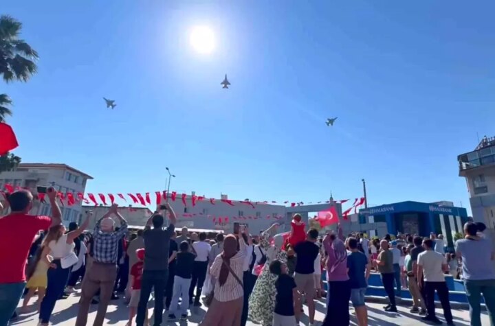 Aydın'ın Söke ilçesinde düzenlenen kurtuluş günü kutlama merasimlerinde Hava Kuvvetleri Komutanlığı'na ilişkin muharip uçakların...