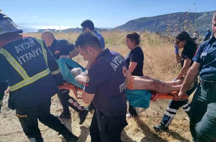 Aydın'ın Kuşadası ilçesinde emekli öğretmen İbrahim Ş., pazardan aldığı patlıcanları közlemek için çıktığı zirvedeki...